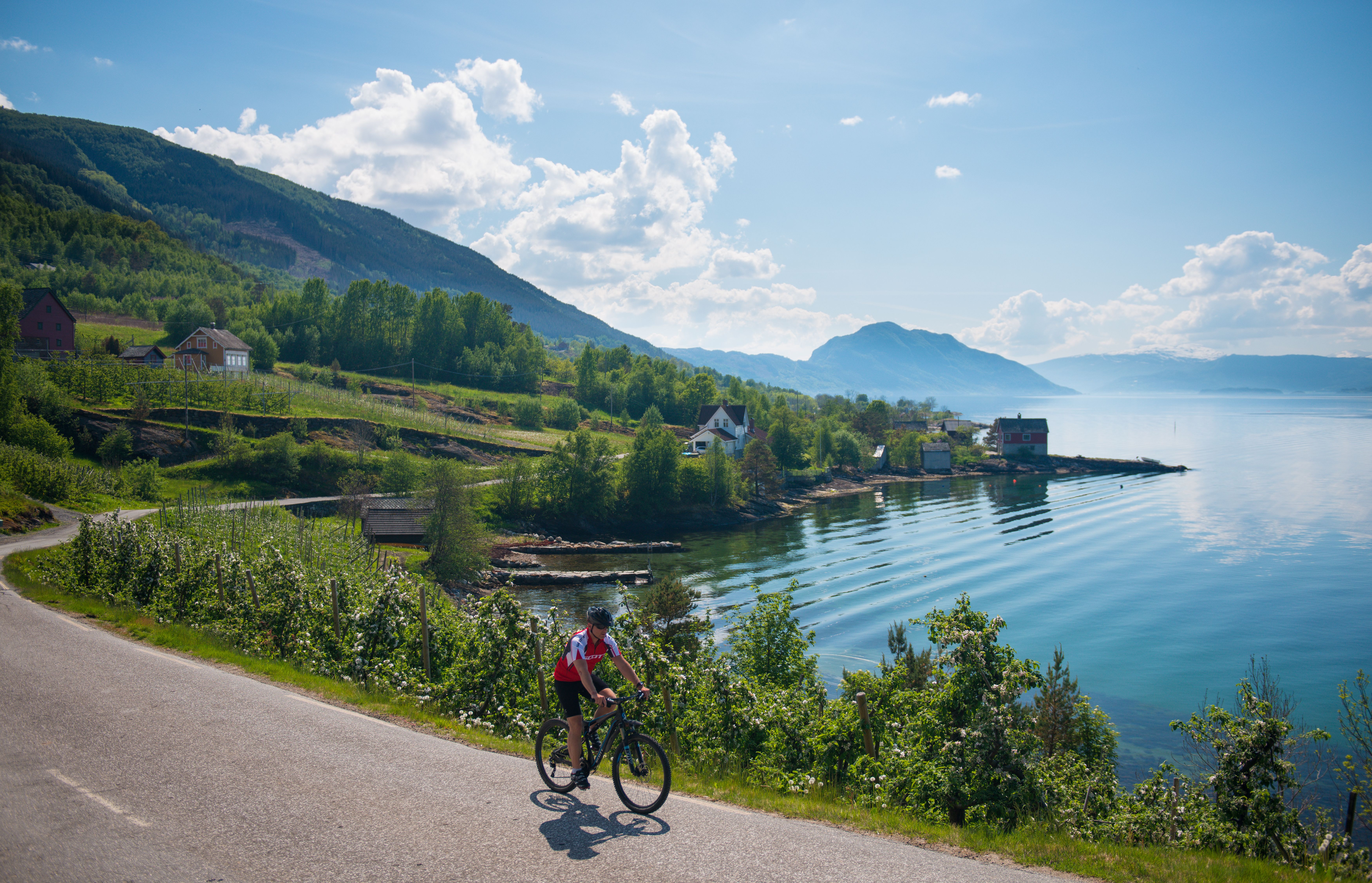 The National Tourist Route: Hardanger runs from Granvin 44 km east of Øystese along the north coast of the Hardangerfjord to Tørvikbygd, where the fjord can be crossed by ferry, and further along the fjord to the end point at Låtefoss south-east of Folgefonna. If you cycle the whole route in one go, it is 158 kilometres long in total. However, it is often divided into four stages so that you have plenty of time to enjoy nature and the unique viewpoints along the route.