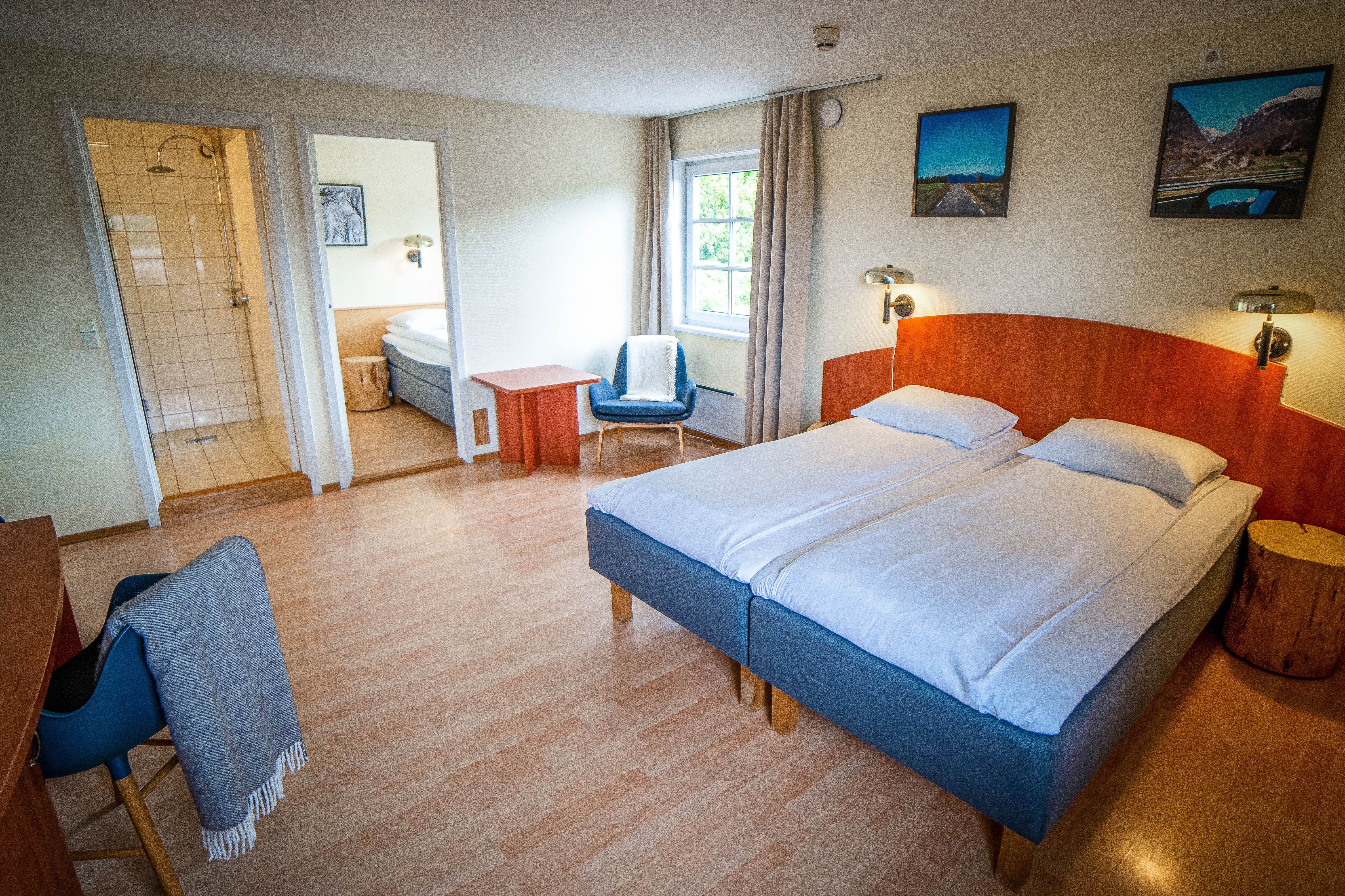 All family rooms can accommodate 4 people (2 adults and 2 children) and are equipped with a comfortable double bed and sofa bed, desk, cable TV, electric kettle and bathroom with toilet, hairdryer, shower and soap. Bed linen and towels are included. The rooms are located in an annex right outside the main building with easy access to both indoor and outdoor common areas. Lilland is a non-smoking hotel.