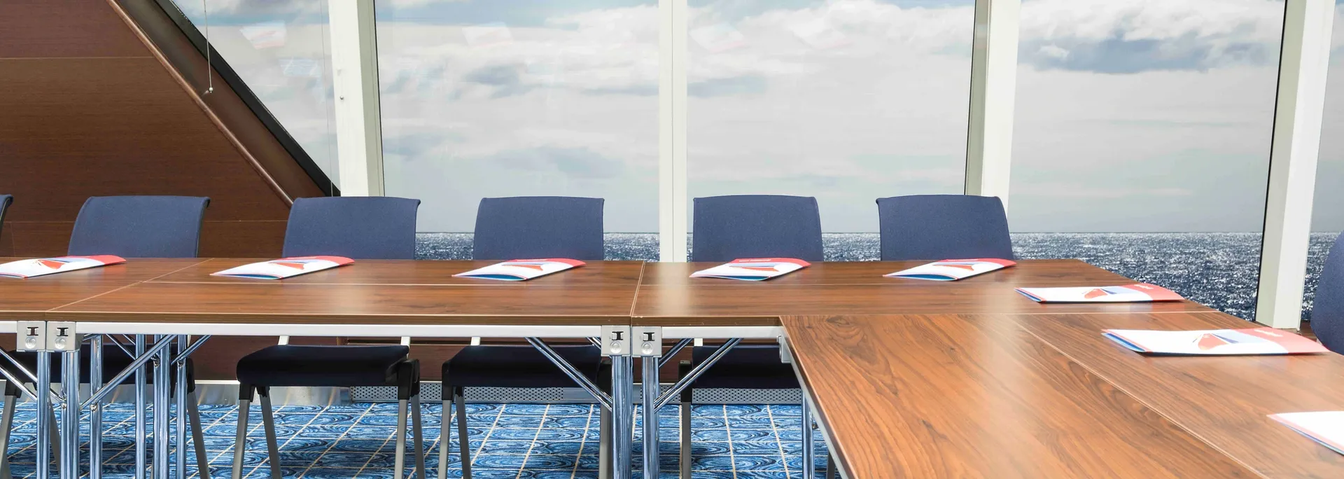 Fasilitetene – som for det meste er konsentrert rundt dekk 10 – er moderne utstyrt med standard AV-utstyr. Her har vi fire møterom som enten kan brukes hver for seg eller slås sammen til ett større møtelokale. På det meste har skipene møterom med plass til 94 mennesker i ett og samme rom. På denne måten slipper man å tenke på alt det praktiske, og er i gode hender fra det øyeblikket en går om bord.