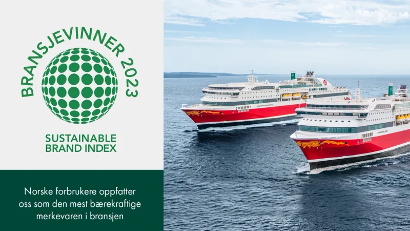 I 2023 mottok vi den gjeve tittelen som bransjevinner innen Travel & Tourism i Sustainable Brand Index. Det innebærer at vårt varemerke oppfattes av norske kunder som det mest bærekraftige i bransjen.